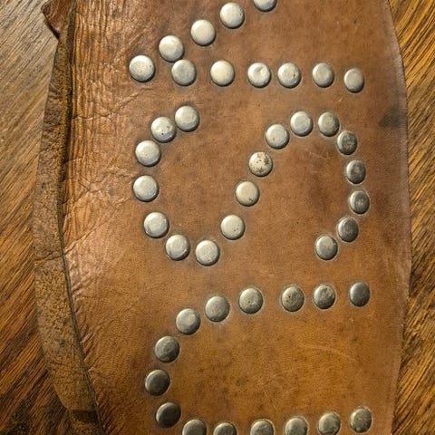 Gammelt men velholdt nyrebælte i læder - formodentligt fra DKW motorcyklernes storhedstid i 1949 -1956 (eller måske ældre?).
