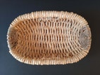 SOLGT! Rustik kurv med 2 hanke, udført i flettet naturmateriale. Længde 26 cm, bredde 16,5 cm, højde 8 cm. Kurven fremstår i meget pæn stand.