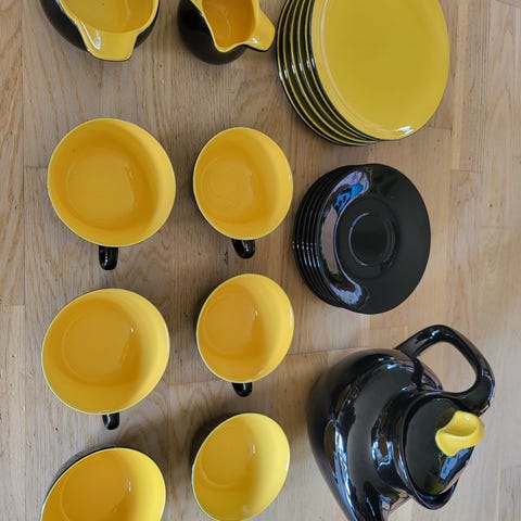 De 2 sæt består af 2 tekoppe med matchende underkoppe, 2 kaffekoppe med matchende underkoppe og 2 tallerkener som kan bruges sammen med både kaffesættet og tesættet.