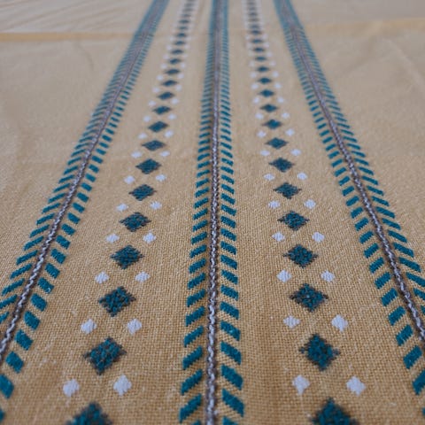 Smuk vintage borddug med flot vævet mønster i dejlige farver.