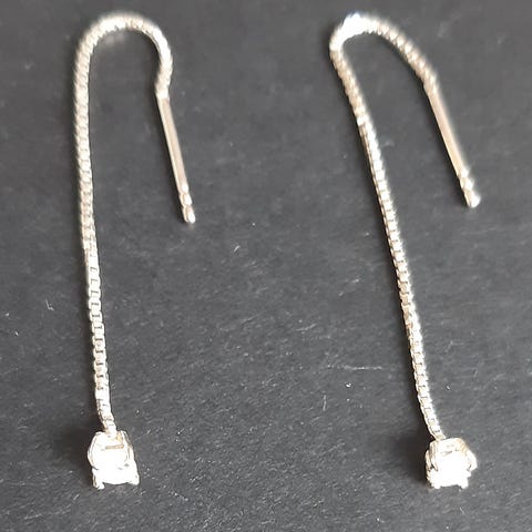 Nye sølvørestikker med månesten og klare cirkoner. Stemplet 925. Mål - 10x7 mm.