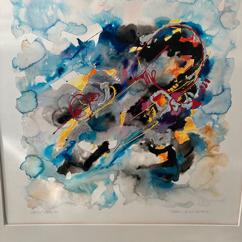 Akvareller, Peter Christoffersen , motiv: Japan motiv , b: 100 h: 103, To flotte farverige akvareller