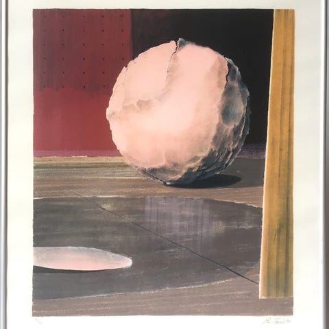 Litografi, René Tancula Nielsen, motiv: Konkylielignende figur