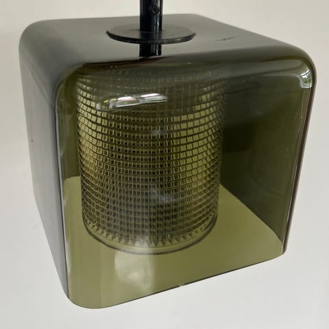 Lampen står fuldstændig som ny uden afslag i det smukke ravfarvede glas og den indvendige klare glasindsats.
