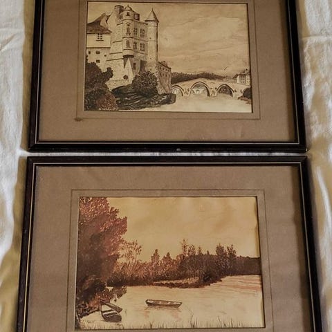 Bemærk at rammerne har en del brugsspor, ridser og ikke slutter helt tæt i samlingerne. Glasset på "Dreng med æble", har desuden en fin ridse over den ene kind.
