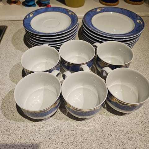Porcelæn, underkopper, Blå Magnolia Royal Copenhagen, Overskud efter oprydning.
