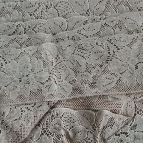 Blonde, 8 blonder / kniplinger i forskellig længde og bredde, 2 gardinsnore med kvaster og 4 trekantede blonder (3 hvide og 1 mørkeblå) sælges samlet.