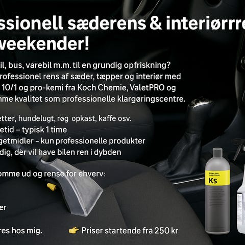 • Maskinrens af stofsæder eller rens af op til 5 sæder