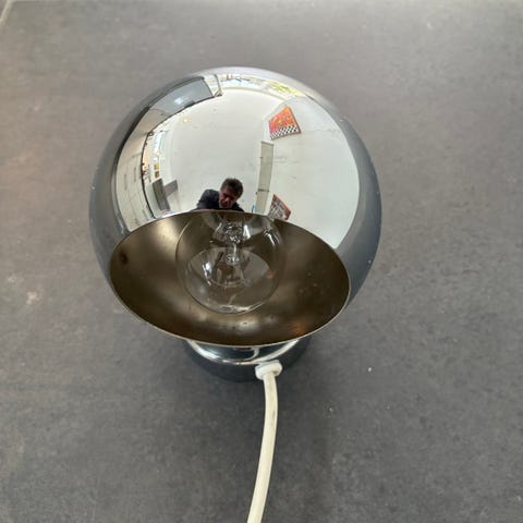 Børstet stål/opal lampe i hvid glas. Egnede til badeværelse og minder om en IFÖ lampe. Den er helt uden skår og skader. Aldrig brugt.