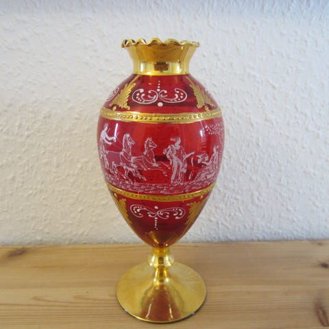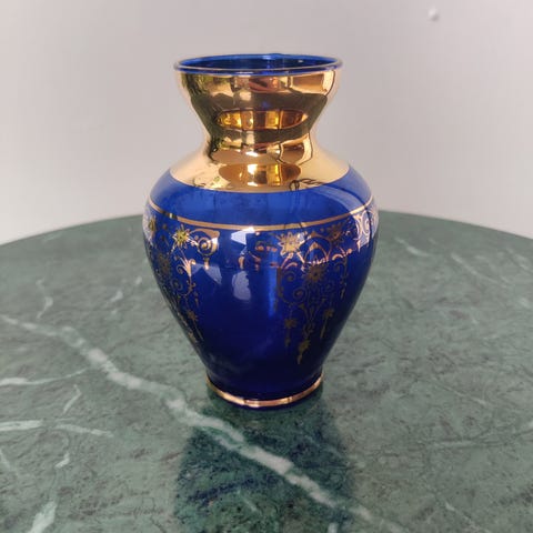 Lille vase i muranoglas, motiv: Vase i muranogkas med bladgulddekoration