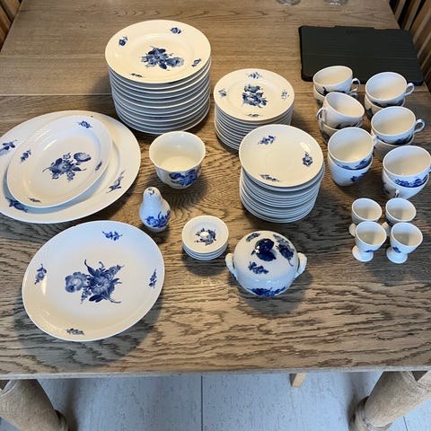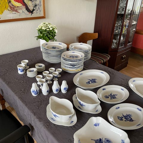 Porcelæn, Et helt stel af Juliane Marie Blå blomst, Royal Copenhagen