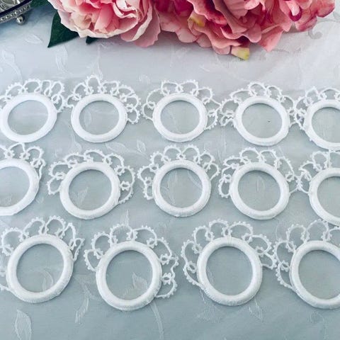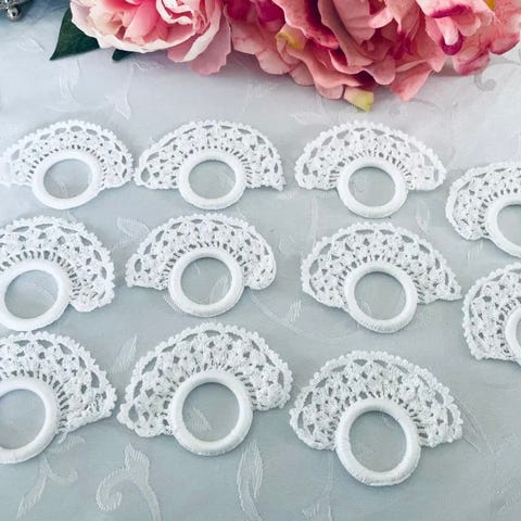 Håndarbejde, 28 Hæklede servietringe, Håndlavede hæklede servietringe med indvendig diameter på 2 cm. Sælges i lots a 6 stk.