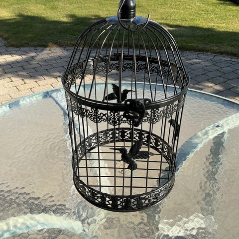 Dekorations bur, Metal, Sælger 2 str af dekorations bur/ fuglebur i guld farve. Har 1 stor og 3 stk af den mindste. De er ubrugte, og vild flot med det man vil pynte med ind i. Passer fint til ude og inde, orangeriet, drivhuset, terrassen, haven mm