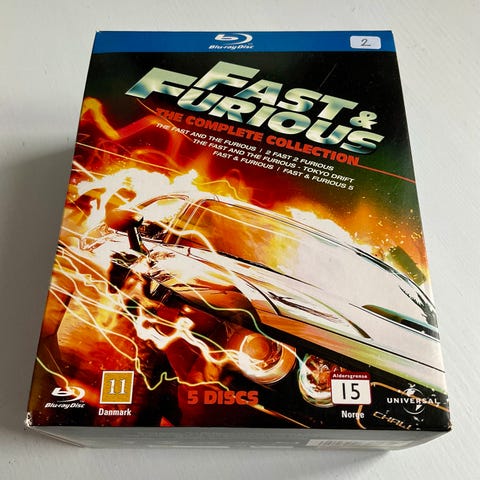 Fast & Furious 1-5: The Complete Collection, Blu-ray, action, Sælger denne Fast & Furious 1-5: The Complete Collection Blu-Ray film boks, da det er en dublet i min samling. Virker perfekt. Kommer fra en samler og et røgfrit hjem.