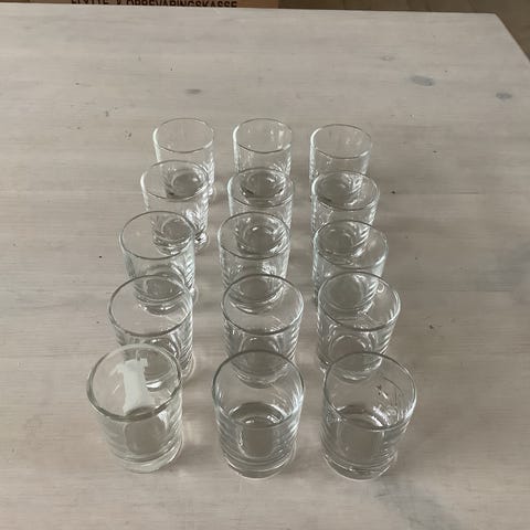 Glas, 5 snapseglas fra 60erne med hestemotiver, ukendt