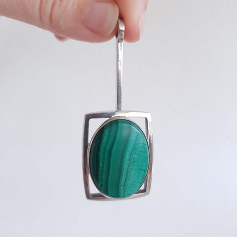 Ubrugt meget smukt stor finpoleret vedhæng med øsken af sterlingsølv og dråbeformet ægte halvædelsten - malakit.