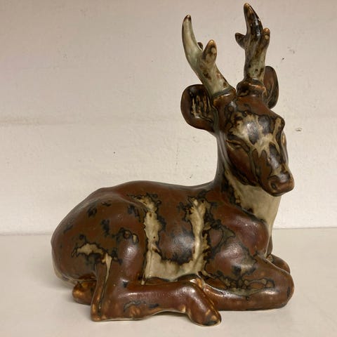 Royal Copenhagen stentøjsfigur Hest 21516 , Royal Copenhagen, Stentøjs hest brun/grøn mål højde ca 14,5 x 20 cm fin stand