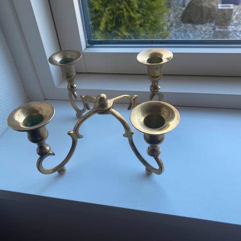 Smukt auberginefarvet lysfad lysestage evt advents, Bahne, Smukt messing fad til 4 lys. Helt ubrugt