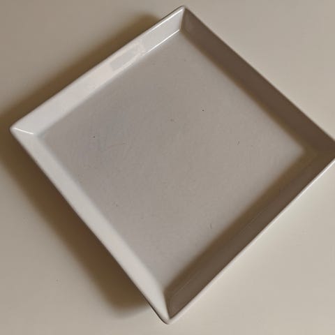 Fad til stearinlys, Ikea, Hvidt fad der f.eks. egner sig til bloklys.