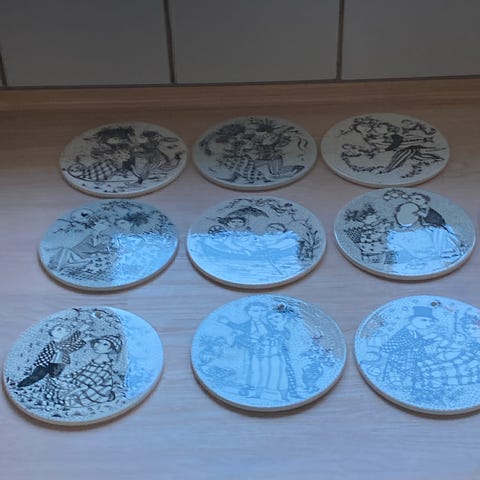 Platter, 12 Bjørn Wiinblad måneds platter Januar - December sælges samlet