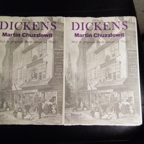 'Martin Chuzzlewit'., Charles Dickens., genre: roman, Udgivet af Gutenbergs Forlag, 1927. Bind I+II, i alt 632 sider. 8 fine s/h illustrationer af Vilhelm Tilly. Indbundet i kunstlæder, med rygtitel i guld.