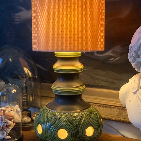 Lampen har afbryder på ledningen og bruger en pære med almindelig stor sokkel (e27). Lampen sidder i sin originale bordklemme.