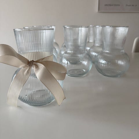 Vaser 6 stk., Klar glas 19 cm høj, Konfirmation og andre fødselsdag og fester
