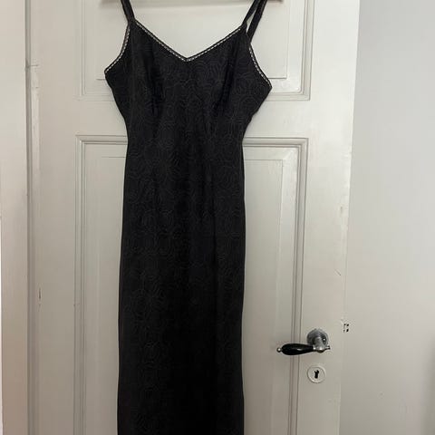 Anden kjole, Mille K, str. M, Lys brun, Polyester, God men brugt, Lys brun kjole Med fint bærestykke og små pomponer langs alle kanter. Kjolen har 3/4 ærmer. Længde fra skulder: 90 cm. Køber betaler evt. forsendelse.