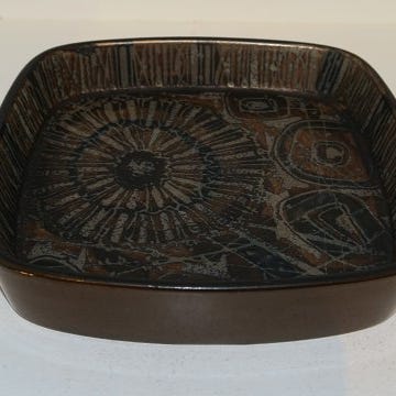 Fajance, Baca skål med øre, Aluminia / Royal Copenhagen, Sjælden Baca fajance skål med øre nr. 870-3122. Skålen er i smukke brune og gyldne nuancer.