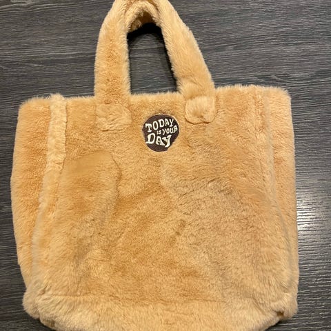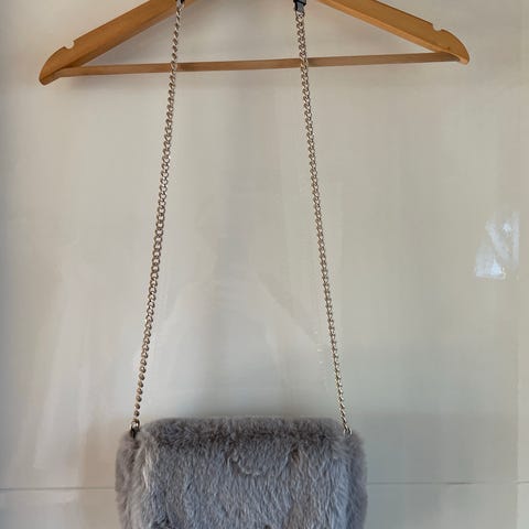 Skuldertaske, andet mærke, plys, Hjælper min niece med at sælge denne dejlige bløde plys/pels skuldertaske. Den er nok beige farvet og der er en tryklås på midten