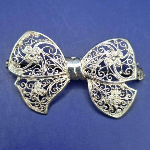 Broche, andet materiale, Flot sløjfe ca. 7 cm lang