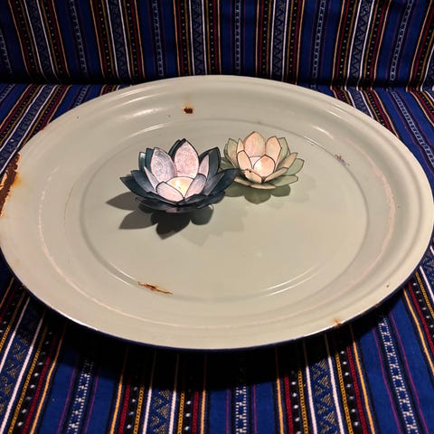 Emaljefad, Retro emaljefad. Skøn blå farve, med stjerne i midten. Brugsspor i form af små ridser, som følge af brug og alder. Måler ca. 27 cm. i dia. Ca. 2 cm. højt. Ægte retro. Flot som f. eks. frugtfad.
