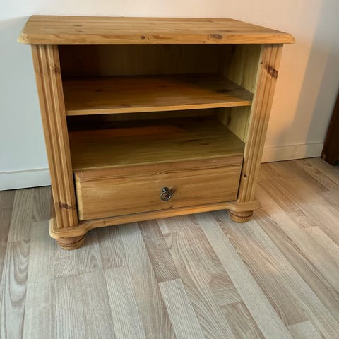 Fin Tv Bord / Anlæg / Musik Bord. Solid massiv Musikbord / Fjernsynsbord / TV Bord med 3 hylder. Længde ca. 121 cm. Brede ca. 57 cm. Alt der skal bruges til samling medfølger. Mulighed for at trække ledning mellem hylderne bagpå. Se alle 8 fotos. Sælges for 170 kr. Kan afhentes på bopæl i Viborg. Se gerne mine andre annoncer - mere kan købes med.