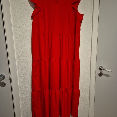 Elastik i livet giver sig, du kan sætte den i taljen, midt på maven eller på hoften, alt efter din højde/stil. Passer str. M-L.