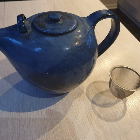 Stentøj, Tekande, Sagaform, Tekande fra Sagaform, design Camilla Engdahl. Stentøj og låg i træ. Kan også sagtens bruges til andet end the. Skønne farver. Brugt, men få brugsspor. Rummer ca. 1,2 l.