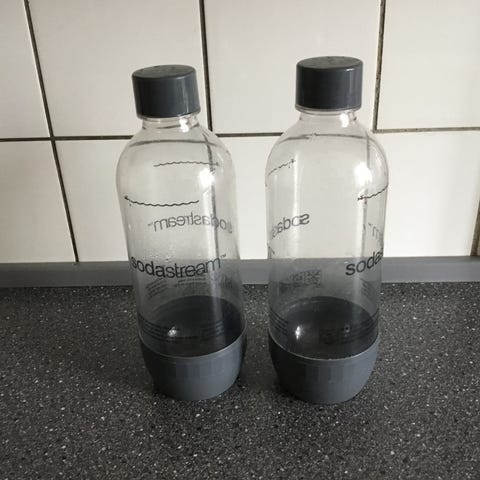 Flasker, Sodasream, 2 velholdte ekstra flasker til Sodastram. Kun brugt meget få gange. En lille og en stor. Sælges samlet for kr. 65 kommer fra et ikke ryger hjem.