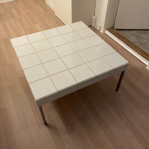 Sofabord, b: 50 l: 100 h: 51, Speciallavet flisebord med sorte metal ben. Uden skrammer og meget slidstærkt. Måler 51 cm i højden, bordpladen er 100x50 cm