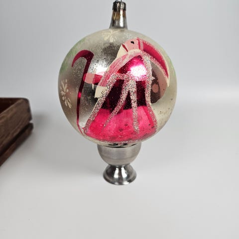 Antikke Julekugler, 2 sjældne antikke julekugler i tyndt glas med håndmalet dekorering.