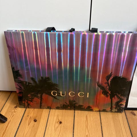 Pose, Gucci, Gucci pose i mærkets ikoniske farve. Kraftig kvalitet. Har lidt buk ellers pæn stand.