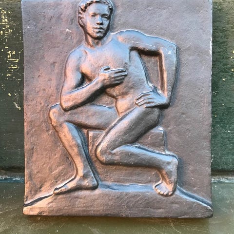 Relief, Gammel relief oprindeligt lavet til palæ i København. Måler 85 høj og 4 dyb og 36 bred. Er frostsikret. Bænken og opsatsen er ikke til salg.