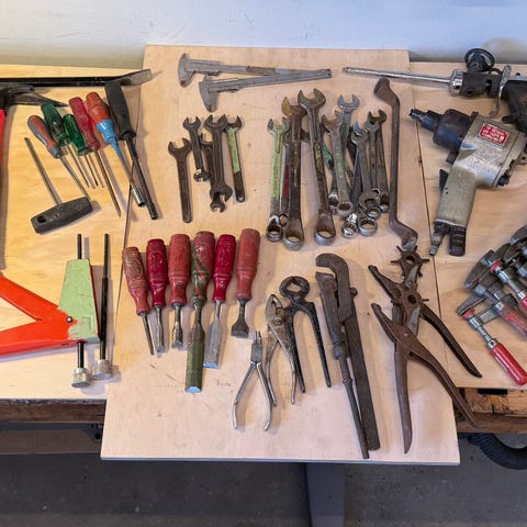 Andet håndværktøj, Jeg har en masse forskelligt håndværktøj og andet. Skruetvingere, luftslange, trykluftpistol, tectylsprøjte, Sandblæsningspistol, slæbetov, ledningstromler, file, træværktøj, save, hamre, skruenøgler, bitz, vandpumpetænger, svejse-, klem-, bid-, kniv-, flad-, spids-, sidebide-, og kombinationstænger, strygestål, hængelåse, Cykellåse, skruetrækkere, skruetrækker ophæng rød plast, bøjlesav, smigvinkel, vinkel, tommestokke, mejsler, nedstryger/baronet klinger, tåge/vandudskiller, haveslange, støvmasker, beskyttelsesbriller(kontrast), div. søm/skruer og bolte. stjerne/gaffel-ringgaffel nøgler i størrelserne 8mm til 24mm, arbejdslampe, 5 ltr. benzin reservedunke, advarselstrekant, mørk film til bilsideruden, reservepærer til bilen, bosch stålbørste, m.m. div. håndværktøj, file, reservedunk til benzin/diesel, umbraco nøgler, gamle håndfile fra 1960 erne, advarselstrekant, 2 savklinger til gasbeton, lader til batterier, 2 værktøjskasser. Jeg har løfte og slæbe/træktov (2m til 6m), 2m stålwire 12mm, reservedunk til benzin/diesel , advarselstrekant, bosch slibepapir, diverse slibepapir til rystepudser Bosch gss16a/ festo/ black & dekker (80x166mm nr 2607018080), rystepudser papir til GSS23A (93x185mm), div. håndværktøj, file, lader til husholdnings batterier + 1 til bil, arbejdslamper 220 volt, umbraco nøgler, stiksav klinger, nedstrygerklinger, armeret slange 10mm, m.m. giv et bud. Kan bruge noget er det billigt. Kom med bud på det du ønsker.