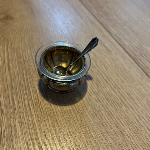 Glas, Saltkar, Biedermeier, Gammelt saltkar i glas på metalfod