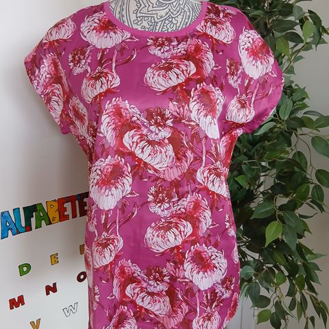 Super sød lang top med elastikstykke ved barm/ryg øverst. Asymmetrisk længde - længere i siderne.