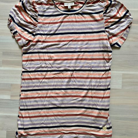 T-shirt, T-shirt, Pompdelux, str. 110, Lys peachfarvet tshirt med opsmøg på ærmerne, logo med guldglimmer på bryster. Fra røg og dyrefrit hjem. Se mine øvrige annoncer og vi finder en god pris. Sælger drengetøj str 56-104 og pigetøj str 56-128, som løbende bliver oprettet. Spørg gerne hvis du søger noget specifikt.