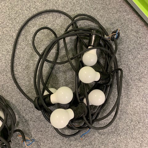 - dva i alt ca 50 m lyskæde med 100 pærer.