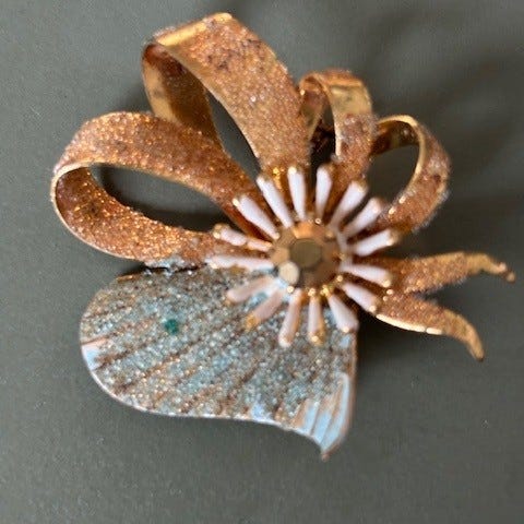 Broche, forgyldt, Marguerit, Marguerit broche i forgyldt sølv med emalje, Ø 39,6 mm.