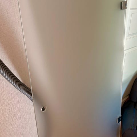 Den kan justeres i breden. 185cm høj og 58,5cm når den er smallest….