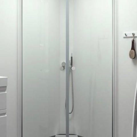 Andet, Samo, Dør til bruseniche, hærdet glas og aluminium.