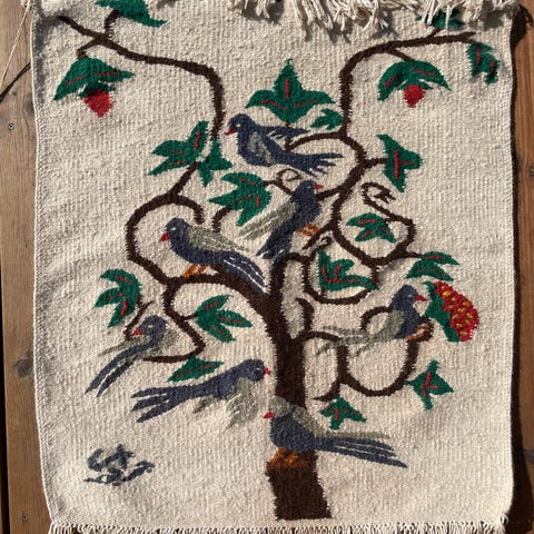 Vægtæppe, Vævet vægtæppe i uld. Fint vægophæng, vægdekoration. Polsk kunsthåndværk. Mål: 50x87.