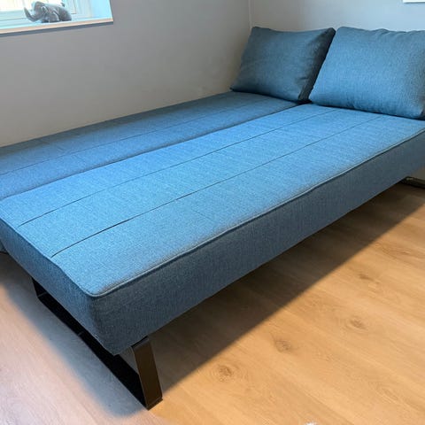Sovesofa, bomuld, 3 pers. , ILVA, Sofa fra Ilva, har originalt kostet 12.000kr. Den er ca 4 år gammel, men har været passet meget godt på. Sofaen er blå i farven. Kan trækkes ud som sovesofa, men opbevaringsrum med plads til dyner i chaiselong. Den skal bæres ned fra 3 sal. Måler 2,35×2,20m. Vi er åbne for bud.